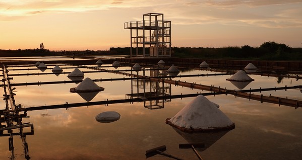 (鹽田歷史榮獲2021「全球百大永續故事」獎) 現存最古老的瓦盤鹽田遺址,原為清領時期的瀨東 鹽場,1818年遷移此至,已有200年歷史。早期製 鹽技術尚不成熟,故產出的鹽味苦澀,鄭氏諮議參 軍陳永華於是改革製鹽方法。在海邊築埕,厚約6公 厘的瓦缸片鋪成的瓦盤鹽田,呈現出馬賽克拼貼般 的美麗藝術,成品顆粒細緻,潔淨白晳。總共有98格鹽格子,堅持以古法「三曝九曬」 製鹽法,鹽工每天早上等漲潮時打開水門,先後讓海水引入大蒸發池、小蒸發池。14天 過後,待鹽鹹度達26.5度,就引到結晶池,曝曬9天就結晶成鹽。共約需23~27天。