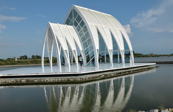 以鹽的白色為主色調,取結晶鹽的晶瑩剔透為其發想, 結合曾經撫慰無數烏腳病患的教會意念,乃有水晶教堂 此名。 設計源自關島海之教會,極簡而純白的水晶教堂充滿異 國風情,並與周遭水面的倒影相互襯托,夢幻的美景無 不令人心神嚮往,是婚紗攝影及婚禮的熱門地點。