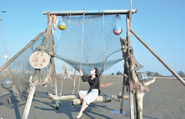 搭乘陳船長的海上觀光巴士,將可以到 雲嘉南秘境「蛋糕沙灘」,這個隨著潮 汐而出現的無人島上,有著在地業者所 精心設計的藝術裝置,讓旅客體驗沙灘 排球或是拍上網美照,還可以在專人導 覽下,深度了解鱟的自然生態。