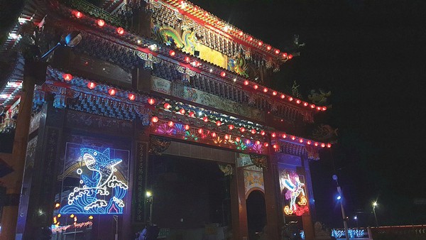 ▲李聖宮廟埕廣場上百顆燈籠象徵「百福圓滿」。