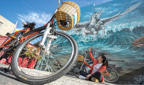 ▲童趣的畫風呈現馬沙溝小漁村特有的漁村風情。