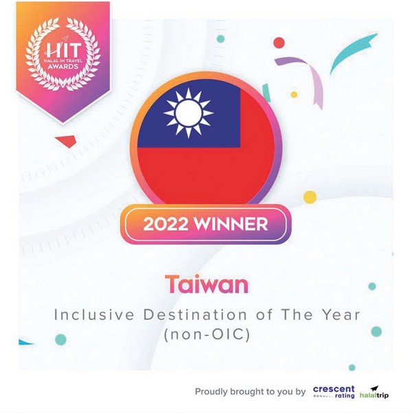 疫後全球跨境旅遊重啟在即,台灣 國際觀光行銷再傳捷報,在6/ 1由新加坡新月評等(Crescent Rating) 舉辦的首屆「2022清真旅遊獎」 (Halal In Travel Awards 2022) 頒獎典禮上,台 灣獲頒「年度最包容旅遊目的地-非 伊斯蘭合作組織 Inclusive Destination of The Year(non-OIC)」獎項;同日萬事 達卡-新月評等2022年全球穆斯林旅 遊指數(GMTI)也於現場發布,台灣 今年為非伊斯蘭合作組織旅遊目的地 (non-OIC destnaitons)第2名,1日雙獎 顯示台灣推動友善穆斯林旅遊再獲肯 定。
