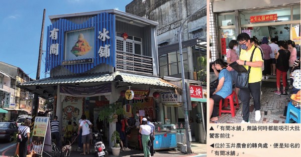 若想吃芒果冰,許多饕客都知道絕對要到產地玉井來,而在 玉井的中正路上,沿途便是林立的芒果冰店,其中位在玉井農 會大樓斜對面的「有間冰舖」,總是人滿為患,甚至出現整條 街上,本店+分店便有3家的奇特景象,探究其原因,其獨門 的手作芒果冰磚就是抓住這些饕客味蕾與胃的最大關鍵。 當您抵達這家開啟在地芒果冰熱潮的老字號冰舖,能看到洶 湧的人潮前仆後繼排著隊,一旁便是忙到停不下來的老闆與員 工不斷盛冰、裝盤、點單,加上每當冰品端上桌後客人們的讚 嘆與驚呼,視覺到嗅覺、聽覺相互交融下,都讓人忍不住想點 一碗好好嘗上一口。 「