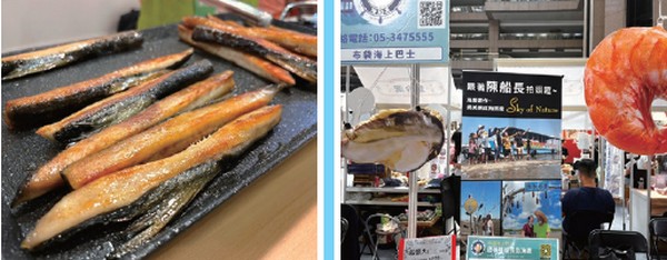 好美船屋則帶來自家養殖的水產品, 蛤蠣、蛤蠣冰沙、蛤蠣XO醬、虱目魚鮪魚 酥、海廢DIY作品,現場還提供無限量試吃 活動,吸引大批人潮品嚐採購。口湖遊客 中心農村社區小舖帶來雲林口湖盛產的蒲 燒鰻魚、烏魚子、烏魚子干貝醬、烏魚子 鳳梨酥及手工日曬麵,精緻的伴手禮組合 吸引許多企業洽詢預購,尤其蒲燒鰻魚及 烏魚子在第一天就銷售一空,緊接的備貨 也在最後一天中午就完售。此外,台南區 則由田媽媽長盈海味屋參加台灣農業館─ 田媽媽主題美食展區,長盈海味現場香煎 的菲力虱目魚排,香氣逼人、賣像極佳。