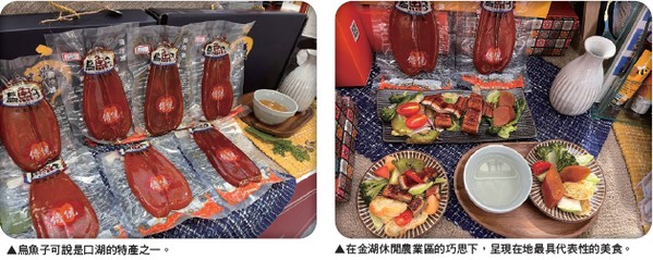 值得一題的是,現場更展示在地知名的烏魚子等週邊商品,除了經典的傳統烏魚 子外,更有烏魚子干貝XO醬等選擇,深獲 現場消費者的高度詢問與喜愛。