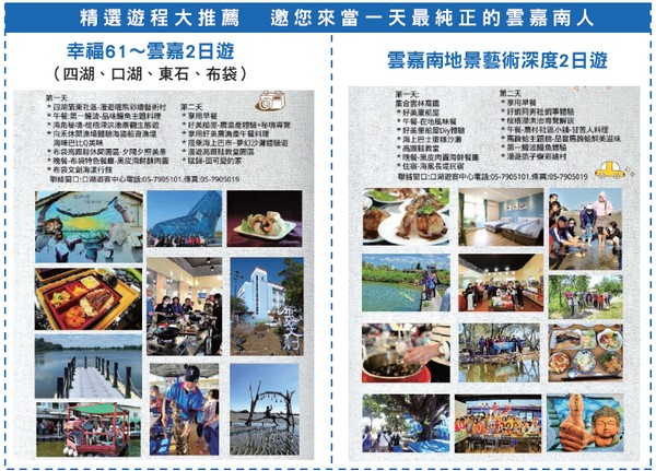 值得一題的是,在雲嘉南管理處的協助 下,觀光圈也發展出多條主題遊程,讓民 眾能深度走訪3個縣市的沿海風光,體驗一 日甘苦人,順道品嘗滿滿海味的獨特在地 美食,享受視覺、觸覺、味覺的多元旅遊 感受。