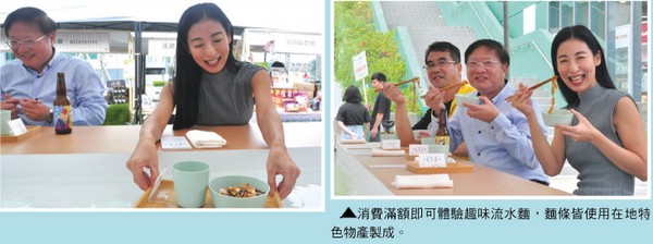 此次市集亮點還有特別打造的「麵的滑水道」,凡民眾於市集消費滿100元,憑證即體驗趣味流水麵,品嚐「十麵埋福」特色麵食料理,不僅促進市集買氣,同時也讓民眾以有趣的形式感受在地好滋味。「十麵埋福」中的10種麵款皆選自西拉雅當地特產製成,包括白河蓮藕、東山咖啡、左鎮葛鬱金、官田菱角、龍崎竹炭、新市火龍果、六甲草菇木耳、玉井蕎麥及芒果,鮮豔的麵條透過料理製出最純粹美味,達到視覺與味覺的雙重饗宴。