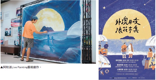 此外,活動首度與台灣知名市集「好好手感微笑市集」合作,引進來自全台各地的手作職人一同打造專屬東北角的浪花市集,並結合「阿秋派」藝術團隊打造大型藝術彩繪體驗,活動現場亦邀約大東北角觀光圈夥伴共同參展,打造連續2日的活動。從下午3點30分到晚上8點30分安排一系列藝術工作坊、浪花市集、星空月夜音樂表演、火舞等精彩節目演出,誠摯的邀請海內外的全台遊客們前往感受屬於宜蘭外澳的絢爛饗宴。東北角築夢之旅─外澳月夜.浪花市集,更多活動資訊請至「東北角觀光資訊網」或至「東北角之友」粉絲專頁查詢。