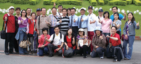 ▲台北市旅行商業同業公會國內旅遊委員會召集人陳松桂(後排右7)率領20多位旅行同業參訪西湖度假村。