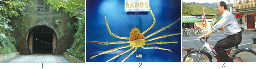 1.舊草嶺隧道入口處綠蔭盎然,遊客在此騎乘自行車時涼風拂面別有一番風趣。
