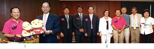 1. (左起)日暉集團總裁董事長鄭越才(左)致贈紀念品給立榮航空首席副總經理陳雄智。