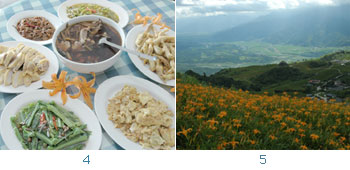 金針古稱為「忘憂草」, 內有豐富的蛋白質和鐵質,營養成分頗高,同時具有安神忘憂的效果。富里鄉的六十石山是國內三大高山金針產地之一,每年8∼10月開始進入高山金針的產期,遊客到此遊憩可倘佯在滿山遍野金黃花海和曬金針的天然美景之中,六十石山建有十座涼亭,立於亭中遠眺花東縱谷,壯闊美景可暫時拋棄煩憂,沉澱思緒。六十石山山路狹小、坡度陡峭,大巴無法進入,需轉乘中巴或小巴上山,遊客到此可品嚐山上農家所準備的金針風味餐,香酥金針、金針香菇雞湯等,別具風味。