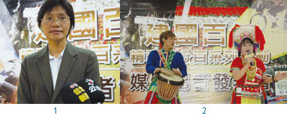 1.交通部觀光局東部海岸國家風景區管理處副處長林維玲邀請遊客參加建國百年精采百分百系列活動。2.東管處以原住民嘹亮歌聲一同歡迎百年曙光的到來。