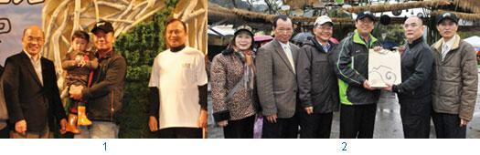 1.宜蘭縣長林聰賢(右)、前行政院院長蘇貞昌(左)主持綠博開幕儀式。2.宜蘭縣政府工商旅遊處處長周慶安(右3)致贈禮物予台北市旅行商業同業公會副理事長丁萊(右2)答謝。宜蘭縣旅行商業同業公會理事長林慶仁(右1)、北市公會委員陳松桂(左3)、旅館行業國際行銷協會理事長蘇乾亮(左2)、台北縣旅行商業同業公會名譽理事長張玉霞(左1)。3.(右起)台北市旅行商業同業公會副理事長丁萊、宜蘭縣旅館商業同業公會理事長孫顏美、旅館行業國際行銷協會理事長蘇乾亮、宜蘭縣旅行商業同業公會理事長林慶仁。 4.北市公會理事吳志浤(右2)、立法委員林建榮(右3)、宜蘭縣旅行商業同業公會理事長林慶仁(左2)。