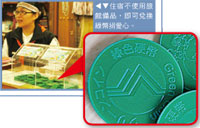 行政院環保署於2008年將環保標章制度擴展至旅館業等服務業,推出「綠行動傳唱計畫」,鼓勵遊客旅宿自帶盥洗用品,不使用旅館飯店提供的一次性備品(如牙刷、刮鬍刀、拖鞋…等),續住不更換床單毛巾,則退房時櫃檯將折換節省備品的費用為綠幣(Green Coin),贈由遊客親手投入「全國性」及「地方性」之綠幣收集箱。