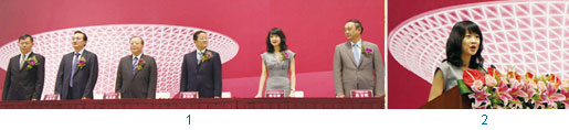 1.台北市政府觀光傳播局局長趙心屏(右2)、上海市旅遊局局長道書明(右1)。2.台北市政府觀光傳播局局長趙心屏於雙城論壇發表演講。