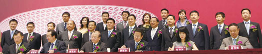 ▲台北市政府觀光傳播局局長趙心屏(前排右2)在與上海市旅遊局局長道書明(前排右1)代表雙方城市共同簽署旅遊交流合作備忘錄。