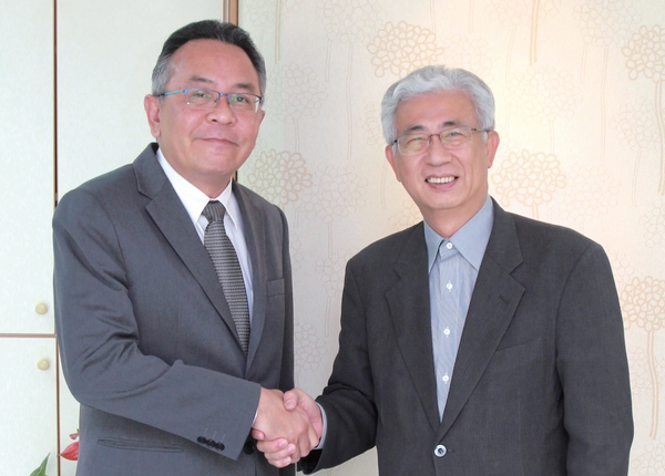 ▲(左起)泰國觀光局台北辦事處處長邱杰、台中市觀光旅遊局局長陳盛山。