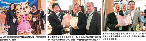 為響應「2018世界最美麗海灣嘉年華會暨組織年會」於9/27正式開幕,台中市副市長林陵三特別與觀光旅遊局等市府團隊前往澎湖,帶著花博吉祥物「樂虎」舉辦「2018台中花博推介會」,向來自世界最美麗海灣組織主席梅拉(MariadasDoresMeira)等世界32國、近200名會員宣傳,由市府副秘書長郭坤明全程用英文簡報花博概況,同時播放花博影片,獲得熱烈迴響。此次推介會市府特別安排花博吉祥物樂虎也到場賣力宣傳花博,可愛的模樣受到國際友人青睞。
