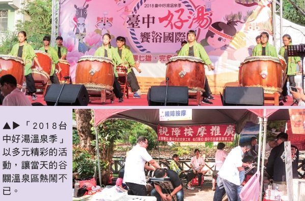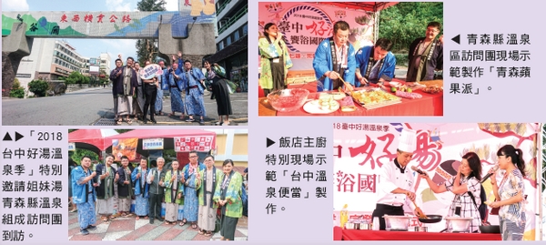不僅如此,活動特別邀請到姊妹湯─青森縣溫泉區及北海道登別溫泉區蒞臨,並示範製作「青森蘋果派」與遊客分享;加上經濟發展局提供的在地「原民美食」,以及「溫泉區在地文創商品創作競賽」、「台中溫泉便當」代言人的飯店主廚示範「台中溫泉便當」,搭配西川流日本舞蹈等演出,讓當天的谷關溫泉區熱鬧不已。