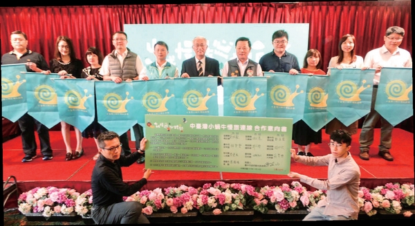 ▲中臺灣10個慢旅小城代表亦到現場支持簽署「中臺灣小蝸牛慢旅連線」合作意向書。