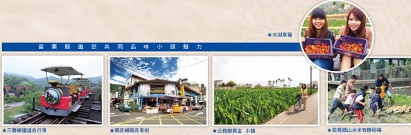 苗栗縣文化觀光局局長林彥甫表示,在苗栗縣政府的大力推廣下,成功開發出更多亮點讓看見苗栗獨有的優美風情與文化底蘊。以近幾年為例,苗栗縣推動三義、南庄雙慢城、舊山線RailBike鐵道自行車頗受好評,今年更有苑裡鎮、公館鄉拿下「交通部觀光局經典小鎮」票選第1及第5高票;大湖及南庄鄉也名列客委會推薦的「10大客庄小鎮」,苗栗縣同時有5個鄉鎮獲表揚,成為各縣市之冠,其特色小鎮魅力,也為苗栗縣經典、客庄小鎮與慢城做最好的行銷。