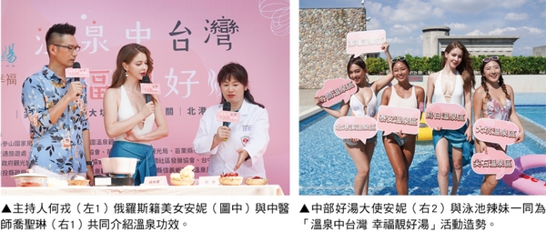 一同受邀出席記者會的俄羅斯精靈美女「安妮」與中醫師喬聖琳在記者會現場分享溫泉保養術,喬醫師表示,夏天泡溫泉不僅更能排除體內廢物、毒素與多餘水分;擴張的毛孔讓礦物質進入體內,不僅增強人體抵抗力,更能放鬆因疫情緊張的身體、達到養顏美容等益處,再搭配簡單的養生美食,由內而外都呵護身體與肌膚。