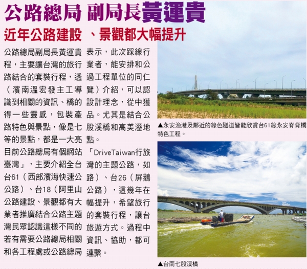 公路總局局長許鉦漳 公路沿線帶動觀光 活絡經濟