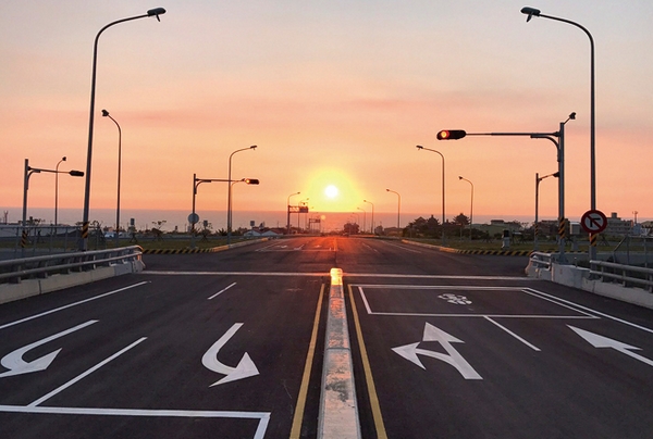 ▲西濱快速道路在通霄新埔交流道—最美公路「日落大道」。