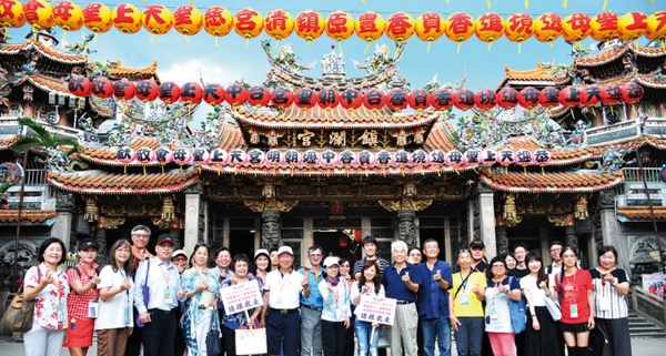 ▲「幸福公路台61-海路漫行輕旅行」踩線團在大甲鎮瀾宮合照。 旅行業品保協會副理事長陳善國(前排左7)。