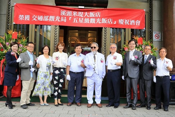 ▲米堤大飯店集團總經理李麗裕(左6)及貴賓合影,歡慶榮獲交通部觀光局「5星級觀光飯店」。