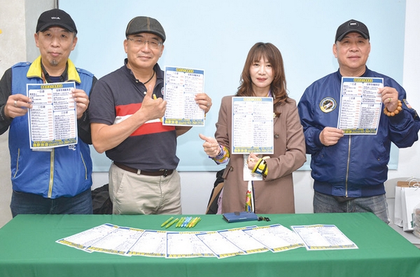 ▲逸歡旅遊董事長駱炫宏(左5)抽出環保袋獎品,贈送給幸運的觀眾。