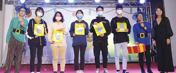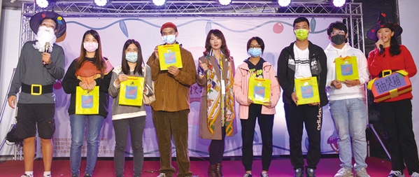 ▲國立雲林科技大學國際管理學士學位學程專任助理教授黃宥婷博士(右1)抽出環保袋獎品,贈送給幸運的觀眾。