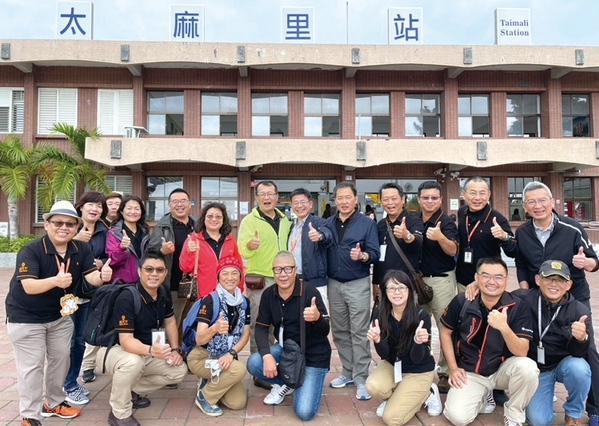▲旅天下總經理李嘉寅(中)和旅天下加盟商於台東太麻里車站合影。