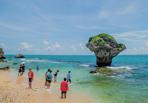▲花瓶岩其實是一塊珊瑚礁岩,因地殼隆起作用而抬升於海面上,外觀類似花瓶的特殊造型。