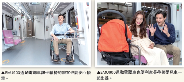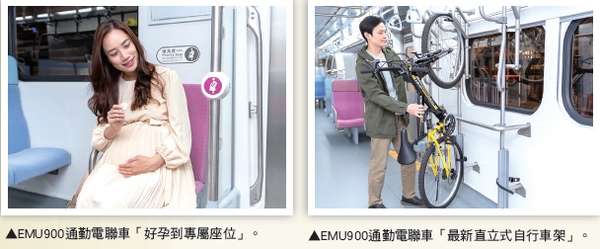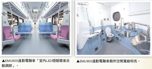 EMU900型為第6代之通勤電聯車,首次引進「微笑頭燈」、「亮綠色腰身帶」、「好孕到專屬座位」、「最新直立式自行車架」、「室內LED燈隨環境自動調節」等5大亮點,為多項創新服務設施之新穎列車。不僅擁有亮麗外型,內裝更透過空間規畫及減法美學設計,全面提升多元友善服務,車廂內最新的燈光自動調節功能,可讓車內燈光亮度根據環境亮度自動調整,讓車廂內保持舒適不刺眼的緩和效果。