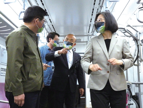 ▲總統蔡英文、行政院院長蘇貞昌、交通部部長林佳龍、基隆市市長林右昌,一起視察EMU900通勤電聯車。