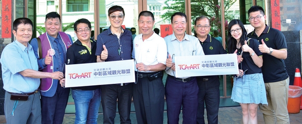 ▲(左起)中彰區域觀光聯盟旅宿彰化召集人謝榮聰、台中市好禮協會理事長鄭人豪、彰化縣城市暨觀光發展處副處長湯國榮、交通部觀光局副局長林信任、中彰區域觀光聯盟副總召集人暨彰化旅遊產業協會理事長吳世長、彰化縣縣政顧問洪文能、交通部觀光局參山國家風景區管理處代理處長曹忠猷、張淑華、課長謝長潤。