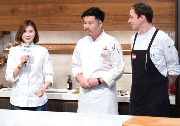 ▲(左起)世界藝術烘焙廚藝金牌老師裴志偉、台中福華大飯店華裔星級主廚William Shen、奧地利籍米其林主廚Klemens Schraml。