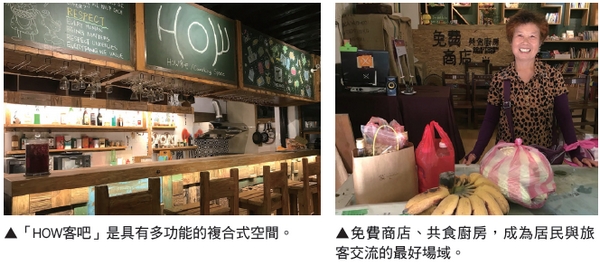 十二寮「時光村」也特別開設一家不用顧店的免費商店、推行共享廚房與搭便車服務,以及用時間換取服務的「時間銀行」(Timelinker)APP,透過交換技能長才的理念,在幫助別人過程中,也換得下一次獲得別人協助的機會。其中免費商店,讓當地居民用以物易物的方式,交換日常生活用品,也許你用不到的東西,對於他人來說卻是用處無窮,來訪的旅客也能捐出自己的東西換取擺設在商店的用品,也成為另類的環保再利用概念。此外,還有共享廚房、搭便車服務,也慢慢變成十二寮居民的日常,除了凝聚社區向心力之外,也與遊客搭起友誼的橋梁。