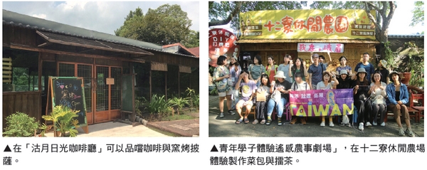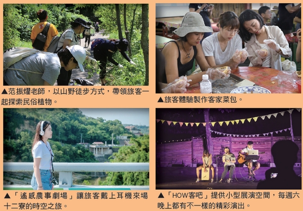 沽月日光凝聚藝術家、音樂達人與科技人,採用環保再生材料,以原創藝術賦予建築物新的生命力,也特別推出DIY&生態導覽,旅客可以體驗擂茶、窯烤Pizza、古早味菜包DIY,也能跟著在新竹縣峨眉鄉經營「小山屋自然農園」長達20年的范振燿老師,一起探索民俗植物,以山野徒步方式進行,透過觸摸、嗅聞、簡單運用等,引起參與者對先民智慧的初步認識,進而產生進一步研究的興趣,深化對土地的情感及愛護自然的情懷。徐志仁指出,2020╱2成立以來已舉辦多場客製化套裝行程,獲得消費者極為熱烈的回響與好評,每個產品都有些許獨特之處,讓來體驗的旅客有著不同感受,也能針對小團體進行客製化行程,歡迎旅客體驗不一樣的十二寮深度之旅。
