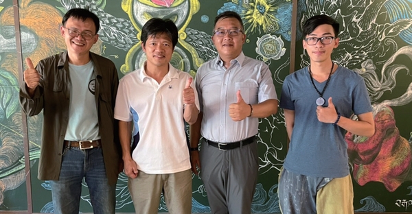 ▲(左起)台灣百合工作室駱明永、十二寮休閒商圈協會理事長徐志仁、竹竹苗區域觀光聯盟總召集人江百松、徐勝華。