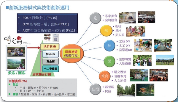 新竹縣峨眉鄉風景優美,是個充滿人情味的客庄小鎮,為推動地方特色經濟發展,十二寮休閒商圈協會在新竹縣政府協助之下,近年積極推動「地方創生」發展,據點包括免費商店、時光村、時間銀行等,結合藝術家、音樂家與科技人才,吸引年輕人返鄉,讓城鎮活化復甦,做出與老街、商圈不一樣的差異化,讓旅客感受傳統客家氛圍,享受慢活時光。