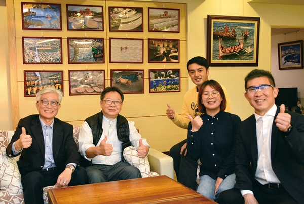 ▲(左起)中彰區域觀光聯盟總召集人柴俊林、觀光學術召集人吳政和、花田民宿主人賴政宏、賴淑薇、旅奇週刊社長何昭璋。