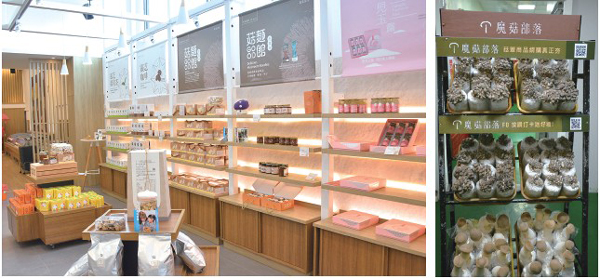 此外,除了新鮮蔬果之外,消費者也 能夠搭配魔菇部落自家研發的特色蕈菇產 品,舉凡蕈菇拌醬、菇麵、杏鮑菇香腸、 黑美人菇貢丸、泡菜菇等,都可以為消費 者提供更多元化更便利的料理選擇。