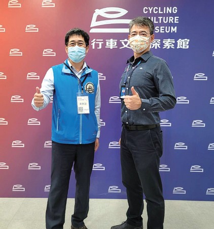 ▲台中市產業故事館發展協會理事長吳德利(左)歡迎自行車文化探索館加入協會。
