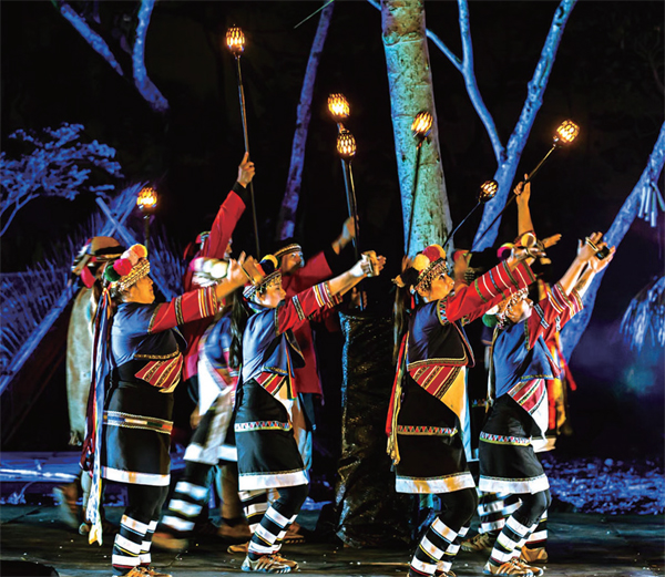 深感長久經營部落觀光產業的過程,普 遍皆以歌舞展演方式呈現集客之手段, 而歌舞內容相仿複製,雖可維持觀賞者 可接受度,但演藝之水準及創新能力尤 需加強。發展方向不僅僅只是分享鄒族 文化,更需淬鍊文化精神且融合美學與 創意體驗,串連部落及周邊產業力量, 期能凸顯品牌鮮明特色,進而發揮綜 效。此外,實境劇目「天界塔山傳奇」 也將在國慶晚宴上演出。