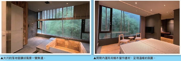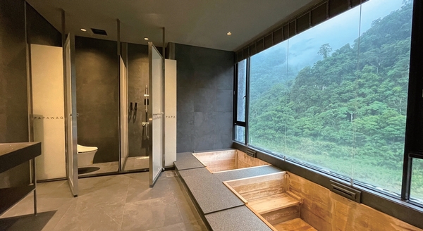 此外,在房間部分也做了大幅度的隱私提升,並確保旅客在泡湯的時候能夠看到完整的風景,戶外視線不受影響,進入╱離開泡湯池的動線上也更加流暢,無論是前往淋浴或是廁所,連貫性更佳。最令旅客安心的是,房內大量引進自然空氣,與抽風系統,以及空調的輔助,讓房內隨時都充滿新鮮空氣,並與其他房間空氣不交流,完全不會有泡湯的潮濕感,乾爽度十足。