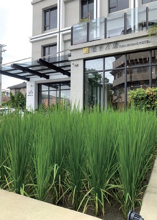 ▲飯店外特別規劃一畝田, 讓旅客能了解田中的名稱由來。