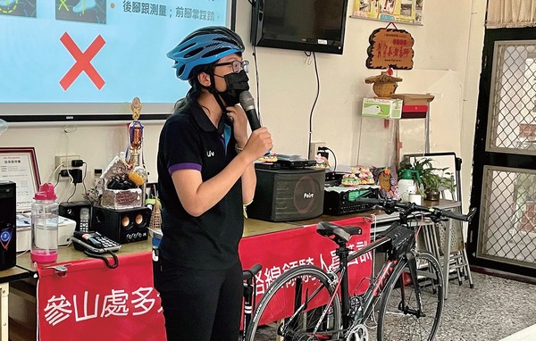 ▲捷安特旅行社專業領隊講受騎乘安全與故障排除。